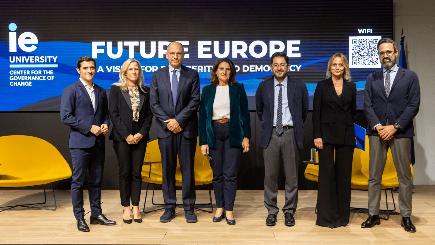 On October 30, 2025, the Center for the Governance of Change (CGC) at IE University hosted a public conversation between Teresa Ribera, Executive Vice-President of the European Commission for Clean, Just and Competitive Transition, and Enrico Letta, Dean of the School of Politics, Economics and Global Affairs at IE University, on the challenges and opportunities facing Europe in the age of AI. In their conversation, Vice-President Ribera emphasized that we are living through a turbulent rebalancing of the global order, a time when mutual cooperation and respect for the rule of law will be crucial to ensure prosperity and peace. In this context, she called Europeans to continue building a stronger Union, keeping in mind our values and principles and promoting a renewed European Dream. “I feel proud of Europe,” she stated. “We have things to improve, but we have an inspiring and powerful model that can serve as a global public good.”