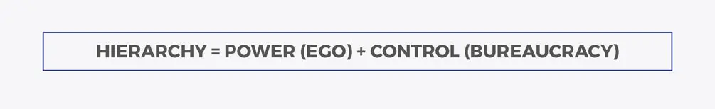 As difficult as it may be to acknowledge this, the obstacle to our companies’ successful transformation is the hierarchy formula they use to organize themselves vertically in silos and horizontally in boxes. Silo supervisors set up processes to ensure control over “their” respective silos (bureaucracy). Box owners try to expand their boxes in order to gain more power (ego).