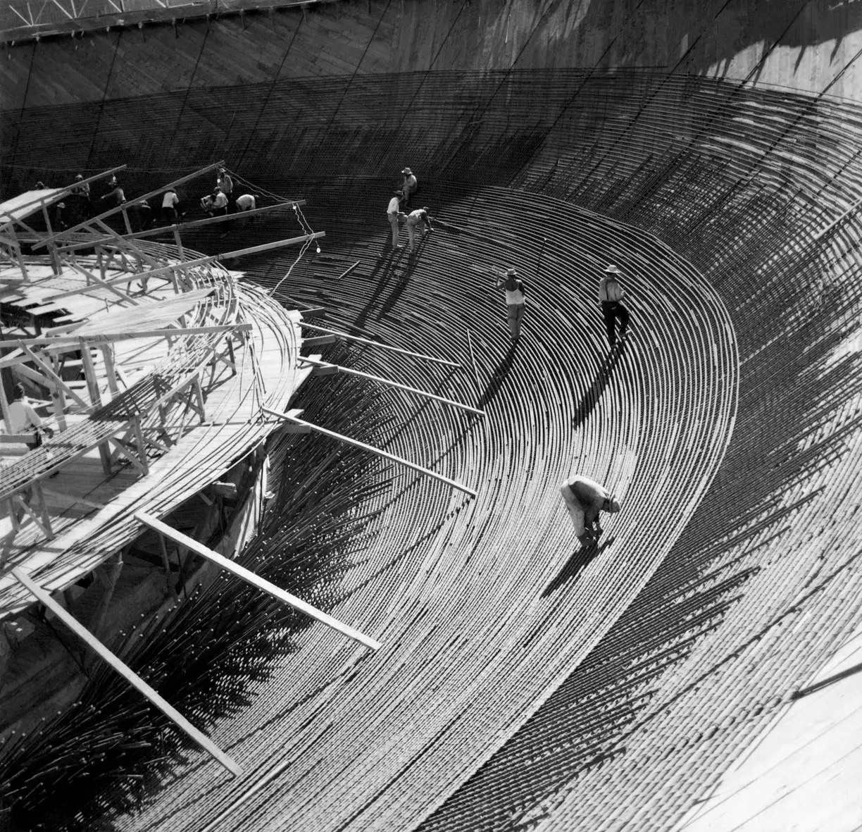 These stunning photos capture the naked skeletons of the Congress building’s towers amidst the haze of the dry dust of the “cerrado” and the meticulous work of the laborers in the construction of its domes.