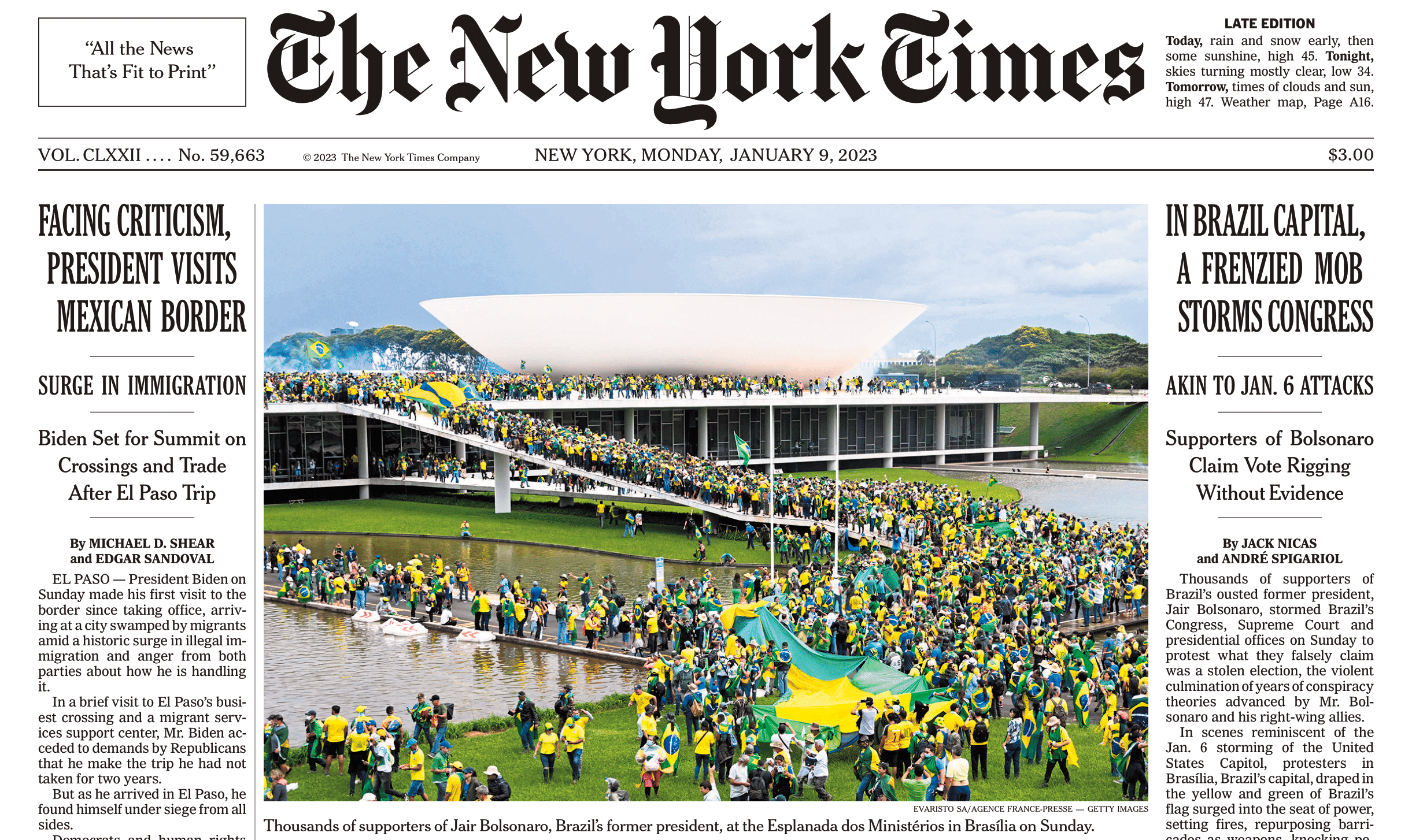 New York Times cover, January 9, 2023.