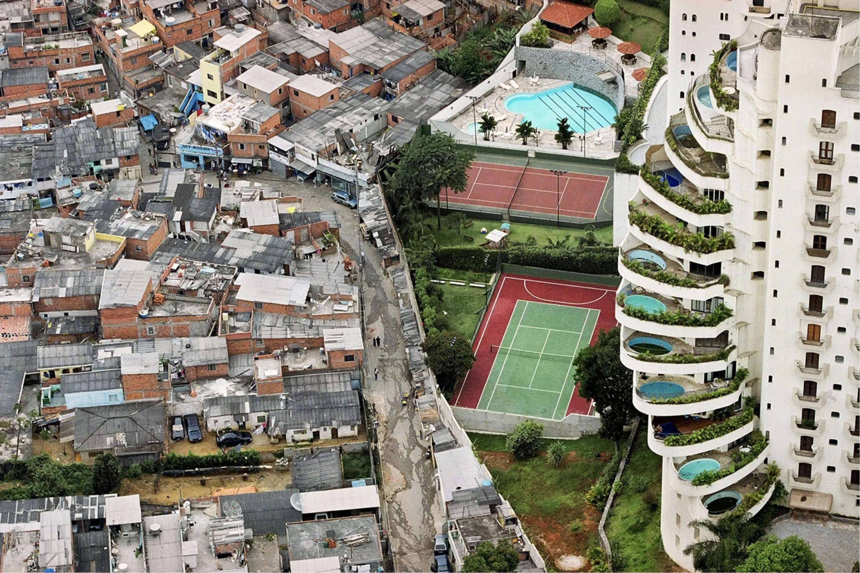 Eighteen years ago, photojournalist Tuca Vieira took a photograph that has since become a global icon of inequality. From a helicopter over São Paulo’s main ring-road, Vieira captured the stark difference between the Paraisópolis favela and the Morumbí neighborhood, split by the Tieté-Pinheiros waterway. It is a literal wall erected within society. Two worlds. On one side, architecture without architects, resource poverty, disaster, and a lack of public space, that main component of democratic cities. On the other, luxury, plentiful space, and a sense of community.