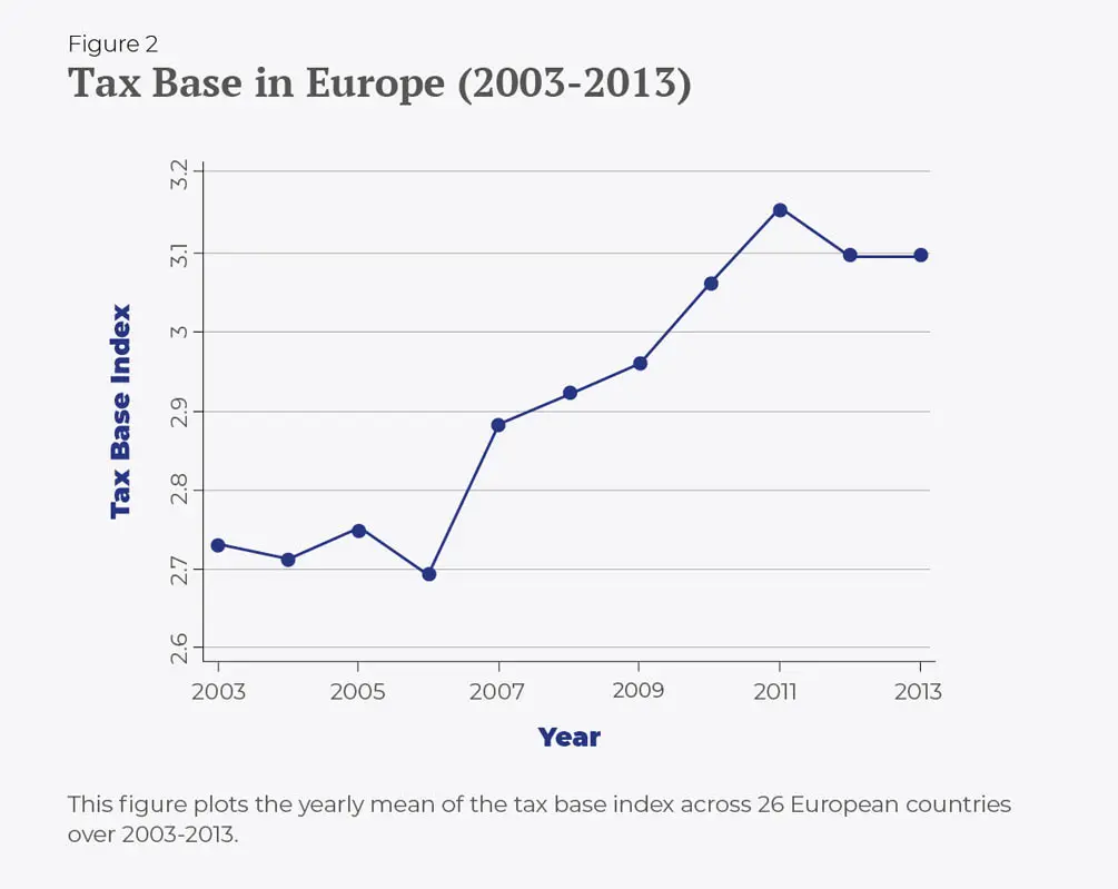 In the attempt to tackle the phenomenon, policymakers all over the world have put several countermeasures into law. In particular, European countries over the last decade have tightened anti-avoidance rules (i.e., laws curbing tax avoidance), lowered the Corporate Tax rate (see Figure 1), and broadened the tax base (i.e., increasing the portion of income subject to taxation, see Figure 2). Regulators in the European Union (EU) claim that these reforms have been effective in limiting tax avoidance However, despite the relevance of this claim, surprisingly, the empirical literature has so far neglected to test this conjecture.
