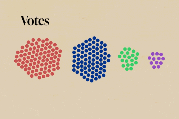 Under proportional representation, parties gain seats in proportion to the number of votes cast for them. For example, if a party gained 40% of the total votes, a perfectly proportional system would allow them to gain 40% of the seats.