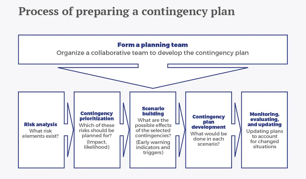 A contingency plan can be divided into three main sections: