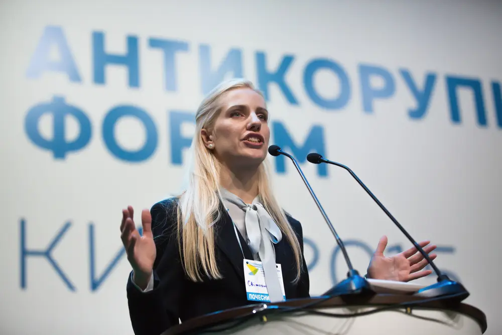 Svitlana Zalishchuk speaking at an anti-corruption forum in Kiev, 2015.