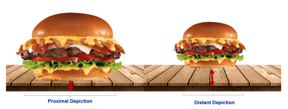 Proximal depiction effect occurs because proximal pictures get associated over time with tastiness, through self-experience, observation, and repeated co-occurrence – depending, of course, on the type of pictured food. According to Andrew Karpinski of Temple University and James Hilton of University of Michigan, stronger associations may occur because of high levels of exposure to and awareness of certain phenomena in a person’s environment. Accordingly, the association of tastiness with proximal pictures of indulgent vs. non-indulgent food would be stronger, as consumers are more exposed to proximally depicted indulgent foods.