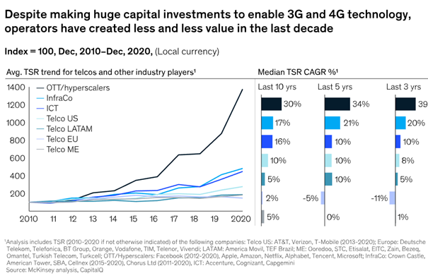 Twenty years ago, telecom operators were some of the biggest, most influential corporations in the world. This influence has waned over the years, and they have become mere middlemen that connect users with online service providers, despite efforts to add value to services (TV and streaming, cell phone insurance, CCTV). This explains, together with growing competition in the Internet access market, why many of these corporations have lost part of their stock market value over the last few decades and their profits have remained flat, compared to the explosive growth in turnover, profits, and influence of the big techs.