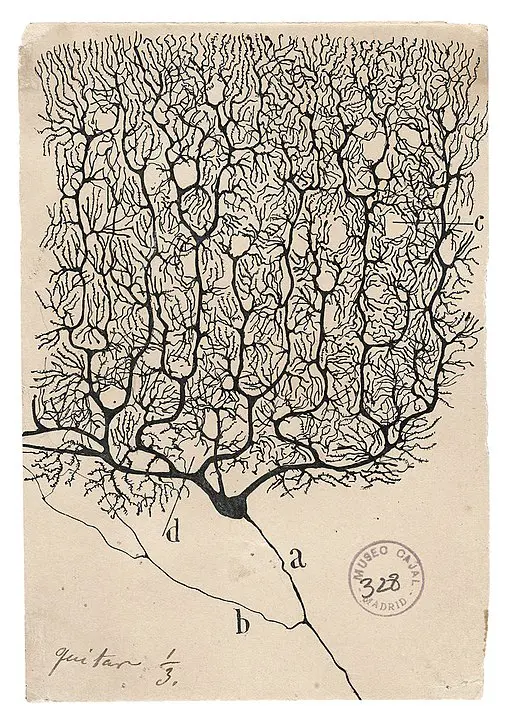 A Purkinje neuron from the human cerebellum, Santiago Ramón y Cajal, courtesy of the Cajal Institute (CSIC), Madrid