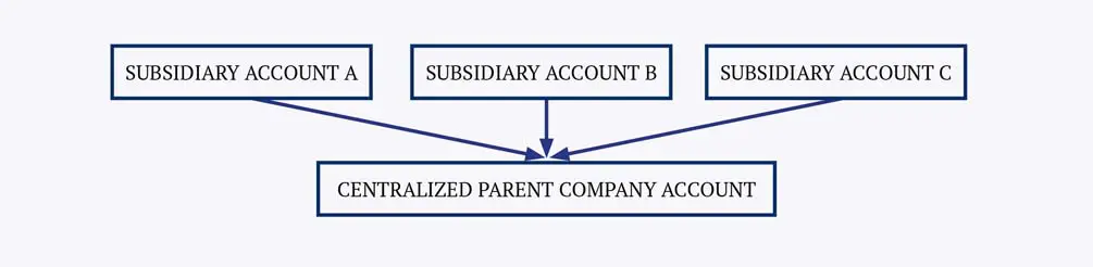 - Zero-balance cash pooling. The balances of all subsidiary accounts are swept into the parent company’s main account at the end of each workday. This is the purest form of centralized cash pooling: debit and credit balances offset one another and the group’s cash management is centralized.