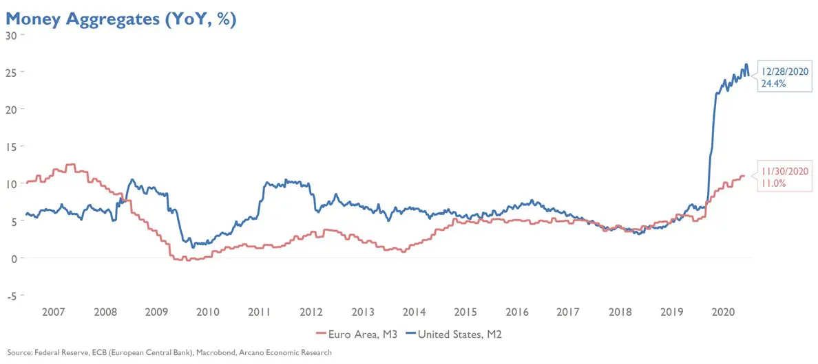 Fourth, the amount of money in circulation has shot up to record levels. Globally, it is growing at a rate of 10%; in Europe of 10% (three times as much as in previous years) and in the United States, 25%, its highest level in forty years. The reason for this is, on one hand, the enormous supply of money guaranteed by the central banks (which have quadrupled their balance sheets since 2007) and, on the other, the transfer of this money to companies, governments and citizens by the banking system, which today is much more solvent and is in a much better liquidity position after the financial crisis. More money in circulation is good, because it can boost economic recovery if businesses and citizens invest and spend their surplus savings accumulated during the pandemic, but it can cause inflation as the use of these funds increases the velocity of money.