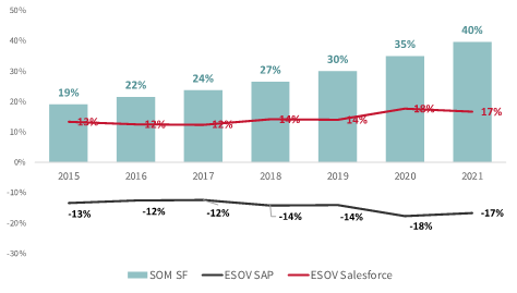 Relative ESOV SAP vs. Salesforce (2015-2021)