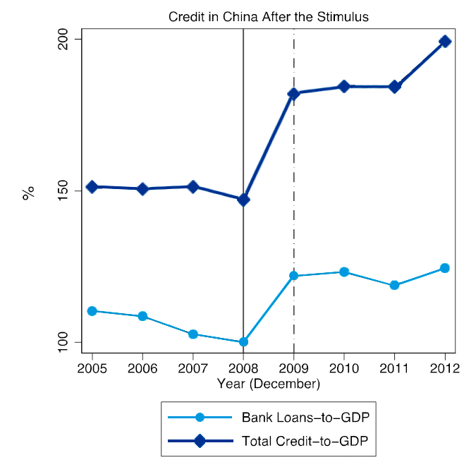 Our empirical work exploits a unique setting that allows to separate credit supply from demand in order to test this theory. In 2008, to overcome the negative consequences of the global financial crisis, China implemented one of the largest credit stimuli in history, nearly 14% of the country’s 2008 GDP. During the pre-stimulus period, state-controlled banks in China originated most of the credit in the economy and these banks reacted strongly to the stimulus. “Beijing ordered banks to lend and they lent” and thus, it was the demand for credit, not supply, that determined what happened after the stimuli.