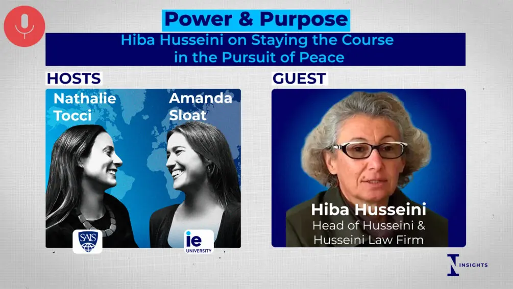 Peace is rarely linear and often pursued under the most difficult conditions. Drawing on decades of legal and negotiating experience, Palestinian lawyer Hiba Husseini sits down with Amanda and Nathalie to discuss the current realities in the Middle East, the limits of diplomatic processes, and the importance of legal frameworks in moments of crisis. She highlights the importance of hope and explains why walking away has never been an option.