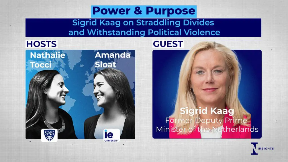 Welcome to Power and Purpose. Today we are delighted to welcome Sigrid Kaag, who is currently teaching at Science Po in Paris. She is also co-chair of the Board of Directors of the United Nations Foundation and Chair of Education Cannot Wait. She’s had an impressive career spanning the private sector to politics and diplomacy. She spent many years with the United Nations, mainly in the Middle East, working on Palestinian aid and Jerusalem children’s issues in Amman, migration in Geneva, development to New York, peacebuilding in Lebanon and chemical weapons in Syria.