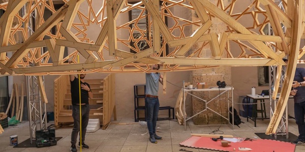 The aim of the project is to "revisit" the construction of interlaced domes to understand their structural behavior and, finally, to build new versions. What makes the dome being installed in Segovia unique is that it has been designed in numbered modules, allowing it to be assembled and disassembled like a complex 3D wooden puzzle. The master carpenters of Narros del Castillo have worked meticulously recreate scale models created over the last five years in real size.