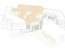 The objective behind this project is to work with the existing by inserting an autonomous structure in order to allow children with Cerebral Palsy to circulate the entire building without any obstacles. Therefore, my strategy was to make the building accessible for both private and public users and design an architecture that connects them together. The building consists of residential units, a therapy center, an art studio, and a green market in the courtyard.