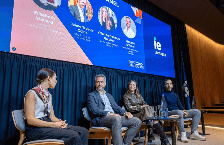A highlight of the event was the alumni panel, which brought three accomplished IE graduates back to campus to share their journeys: Jaime Trainor Goiria, CEO & Founder of Futuro Perfecto; Marcello D’Avino, Senior Product Manager Tech at Amazon; and Yolanda Ocampo Escobar, Senior Project Manager at Microsoft. The conversation was moderated by Elizabeth Stallard, Director of Alumni Integration and Engagement, who is also an IE alumna.