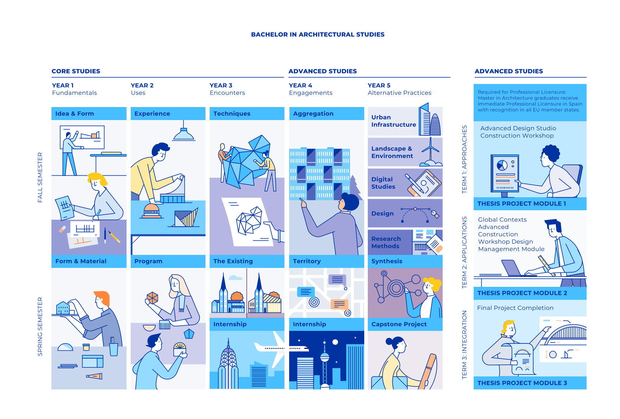 The study plan for the Bachelor in Architectural Studies at IE University has been designed with the prestigious academic experience at its core, our academic faculty’s expert knowledge and research in each area, and the linkages between the University and the professional world.